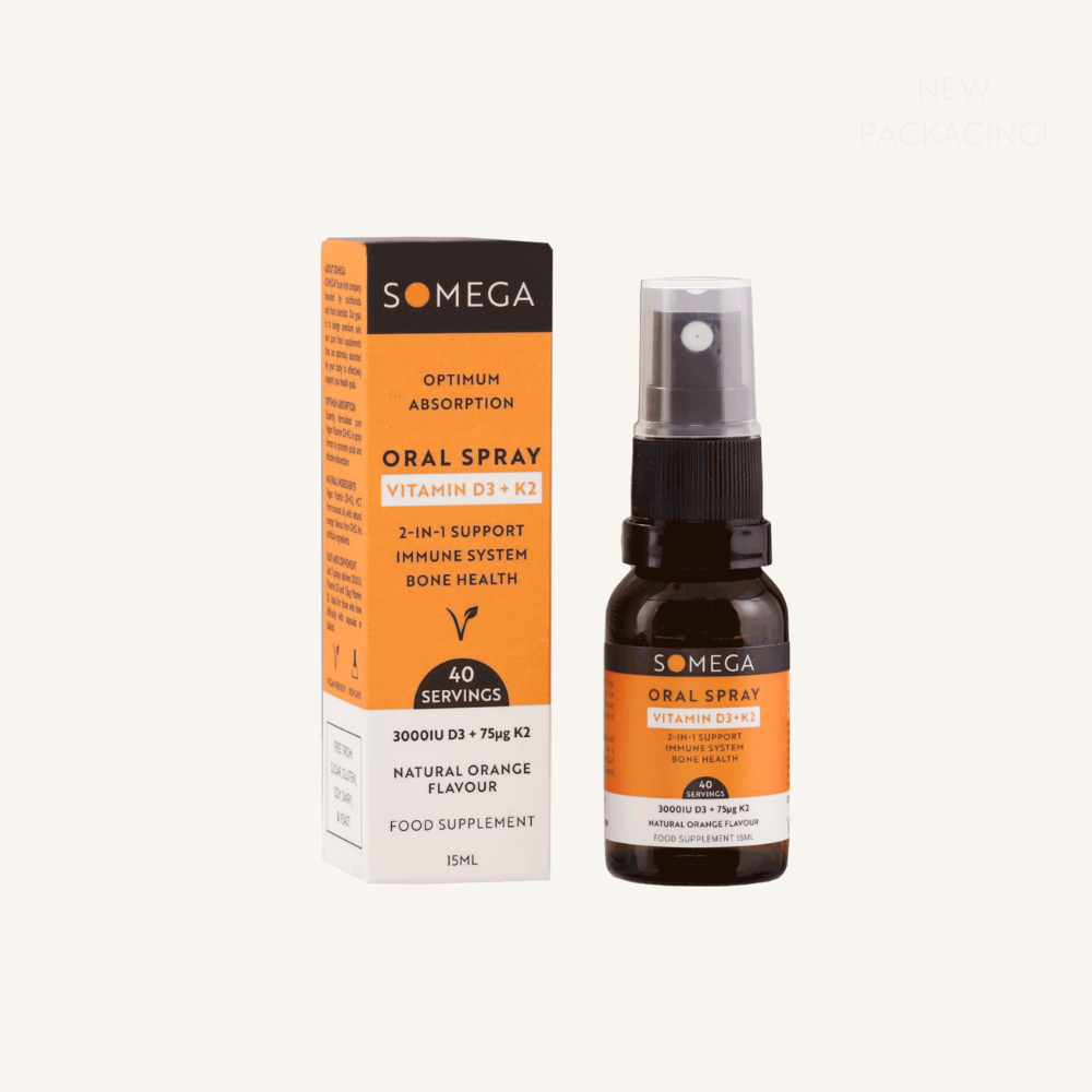 SOMEGA Vitamin D3 + K2 Oral Spray provides a convenient and effective alternative to tablets and capsules which depend on your digestive system for vitamin absorption.